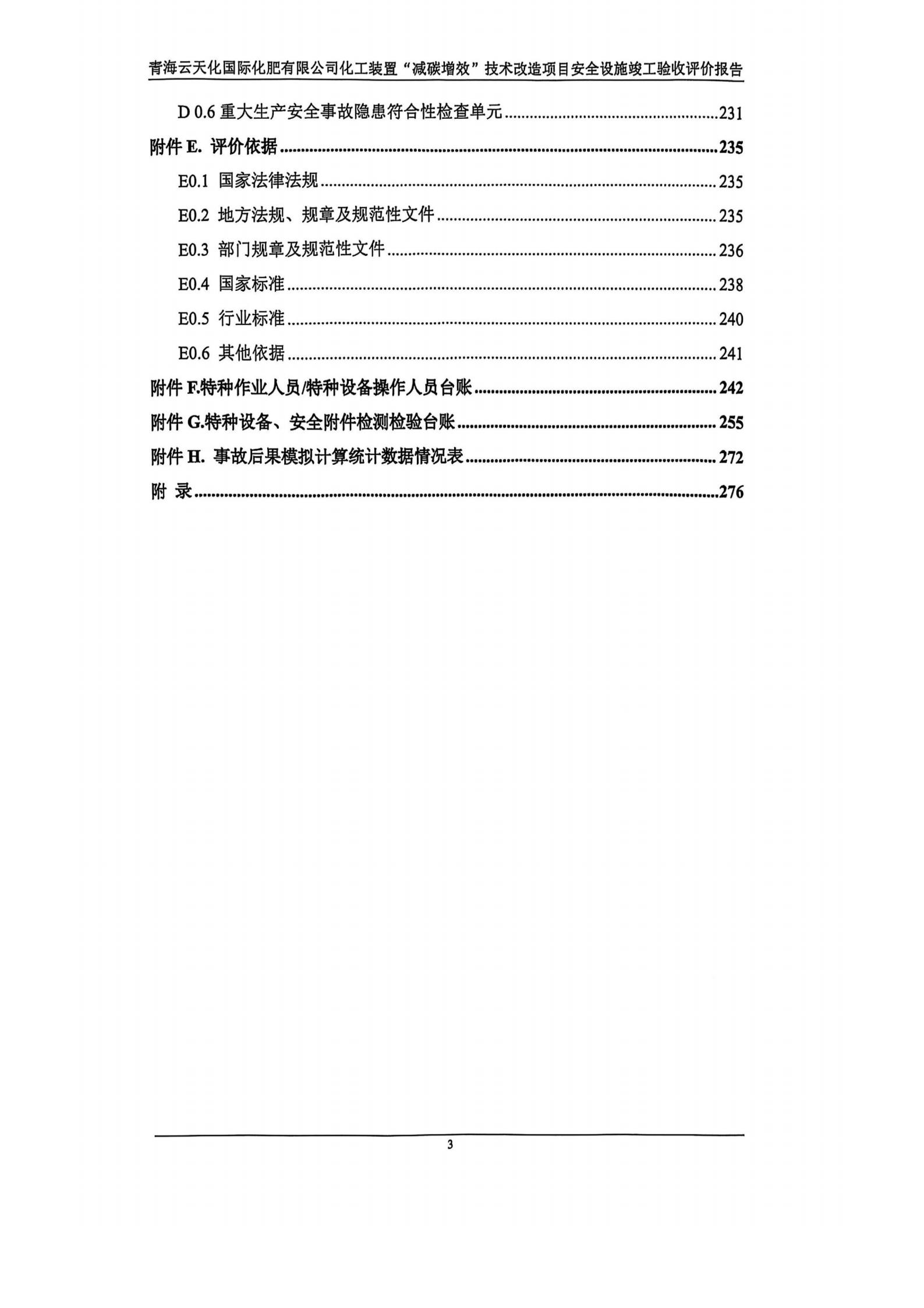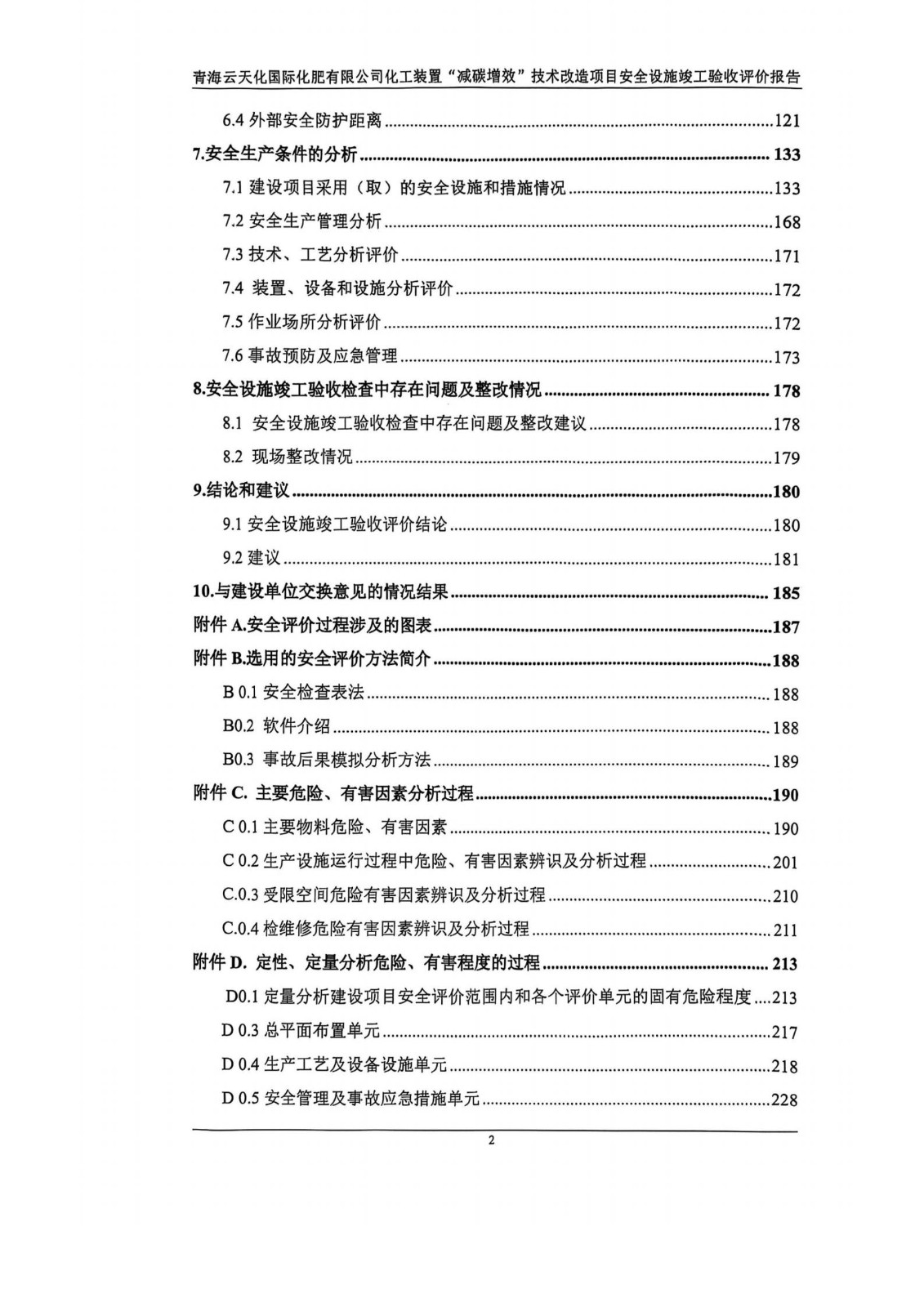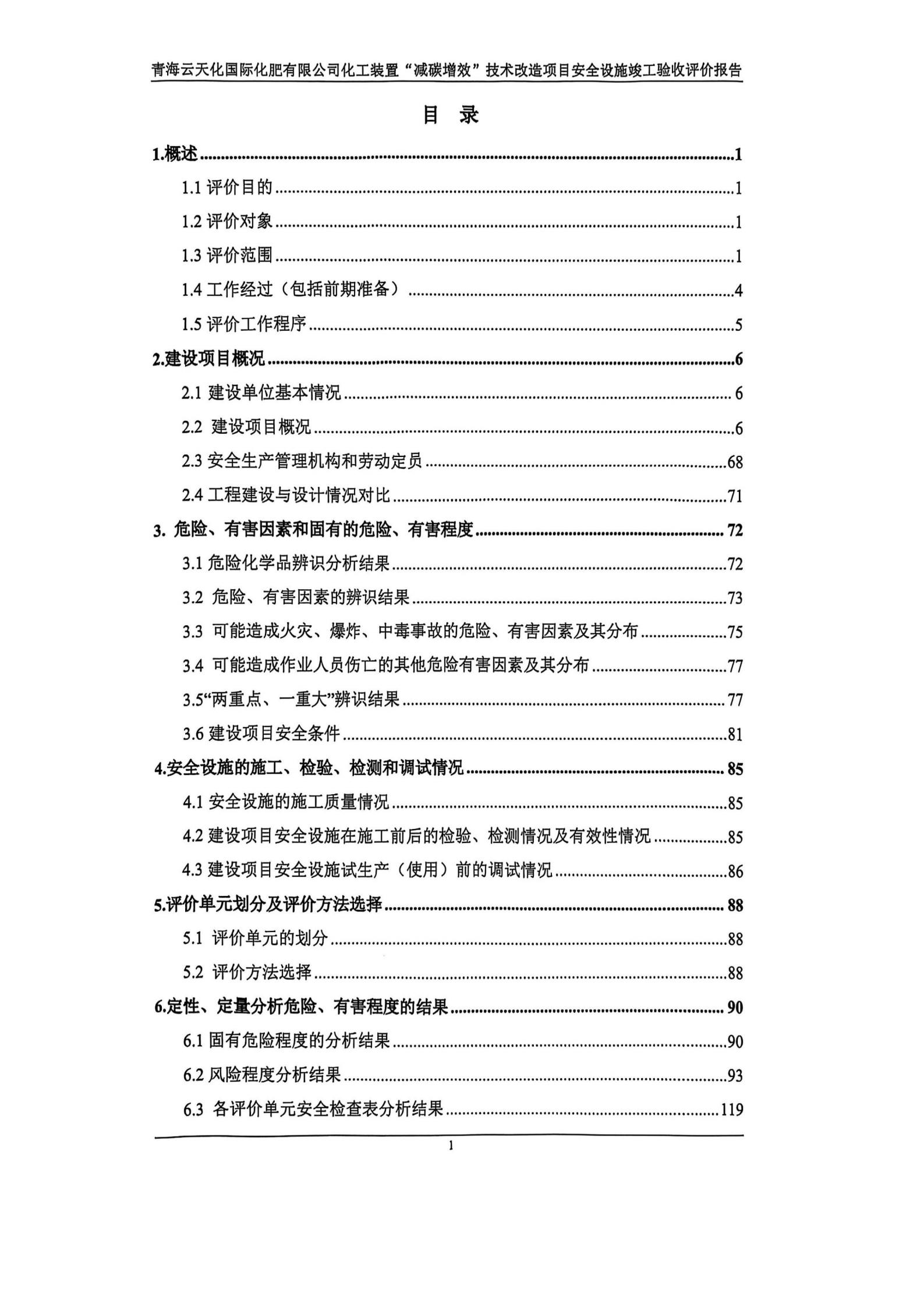 項目名稱 | 青海云天化國際化肥有限公司 化工裝置“減碳增效”技術改造項目安全設施竣工驗收報告 | ||||||