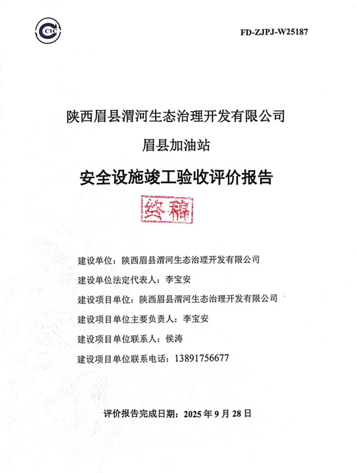 陜西眉縣渭河生態(tài)治理開發(fā)有限公司眉縣加油站安全設(shè)施竣工驗收評價