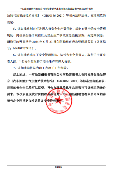 中石油新疆銷售有限公司阿勒泰銷售北屯阿福路加油站安全現(xiàn)狀評價報(bào)告
